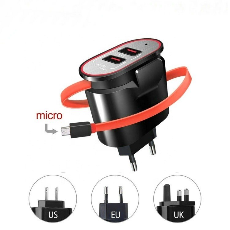 2. Konstrukcja typu 2 w 1 ładowarka ścienna USB i wbudowane kable USB umożliwiają ładowanie telefonu komórkowego